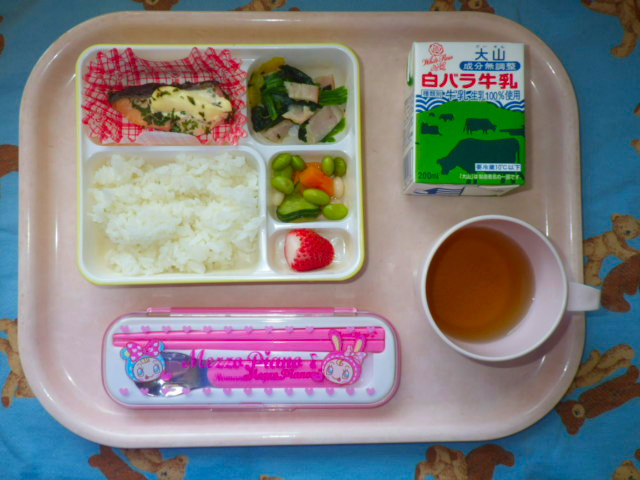 いちごの季節がやってきた!!(2019年4月12日) ★ ごはん◆ 鮭のマヨネーズ焼き◆●ほうれん草ソテー● ビーンズサラダ● いちご ※あたたかいご飯はおかわり自由です。※牛乳は年長希望者のみです。★熱や力になるもの ◆血や肉になるもの ●体の調子を整えるもの ツイート
