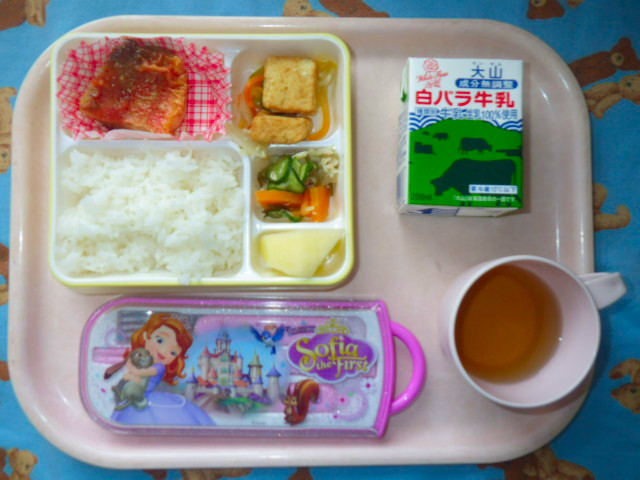 味のしみたお魚さん☆☆(2019/05/10) ★ ごはん◆ 煮魚◆●厚揚げと青菜ソテー◆●大根の塩昆布和え● りんご ※あたたかいご飯はおかわり自由です。※牛乳は年長希望者のみです。★熱や力になるもの ◆血や肉になるもの ●体の調子を整えるもの ツイート