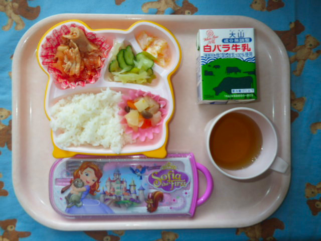 豚肉×大豆★栄養満点だ♪(2019/05/13) ★ ごはん◆●ポークビーンズ★●コンソメ煮● グリーンサラダ◆●フルーツヨーグルト ※あたたかいご飯はおかわり自由です。※牛乳は年長希望者のみです。★熱や力になるもの ◆血や肉になるもの ●体の調子を整えるもの ツイート
