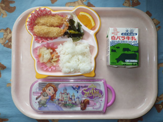サクサクおいしい★エビフライ♪(2019/05/27) ★ ごはん◆ エビフライ◆●キャベツツナ炒め● 海藻サラダ● オレンジ ※あたたかいご飯はおかわり自由です。※牛乳は年長希望者のみです。★熱や力になるもの ◆血や肉になるもの ●体の調子を整えるもの ツイート