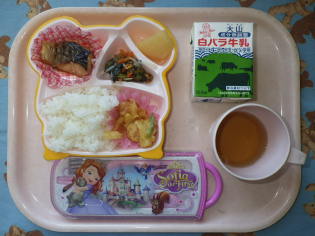 季節の野菜でかき揚げだ☆(2019/05/29) ★ ごはん◆ さばのかば焼き風◆●かき揚げ● ナムル● りんごコンポート ※あたたかいご飯はおかわり自由です。※牛乳は年長希望者のみです。★熱や力になるもの ◆血や肉になるもの ●体の調子を整えるもの ツイート