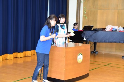 *玄関ホールにて未就園児の方の受付をしています。ゲームができるカードや、おみやげをお渡ししますので、ぜひ遊びに来てくださいね!