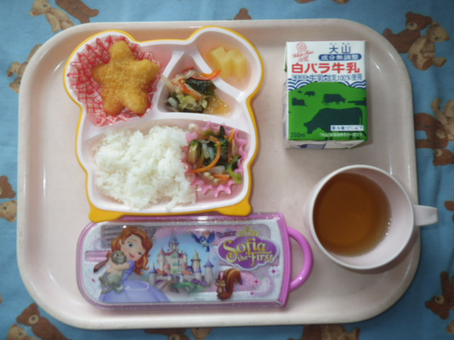 今月は七夕☆星のコロッケをどうぞ♪(2019/07/08) ★ ごはん★ 星のコロッケ◆●ほうれん草ソテー◆●海藻サラダ● パイン缶 ※あたたかいご飯はおかわり自由です。※牛乳は年長希望者のみです。★熱や力になるもの ◆血や肉になるもの ●体の調子を整えるもの ツイート
