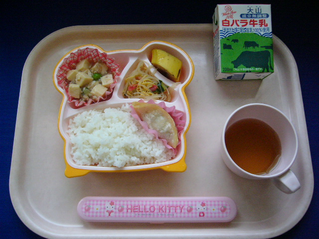ビーフンはお米から作られるよ☆(2013 /5/20) ★ ごはん ◆● マーボー豆腐 ◆● 揚げぎょうざ ★◆●ビーフンサラダ ★ バナナ ※あたたかいご飯はおかわり自由です。 ※牛乳は希望者のみです。 ★熱や力になるもの ◆血や肉になるもの ●体の調子を整えるもの ツイート