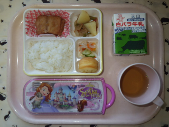秋鮭は脂がのってておいしいよ★(2019/09/20) ★ ごはん◆ 鮭のから揚げ◆●野菜のトマト煮● ナムル★ プチケーキ ※あたたかいご飯はおかわり自由です。※牛乳は年長希望者のみです。★熱や力になるもの ◆血や肉になるもの ●体の調子を整えるもの ツイート
