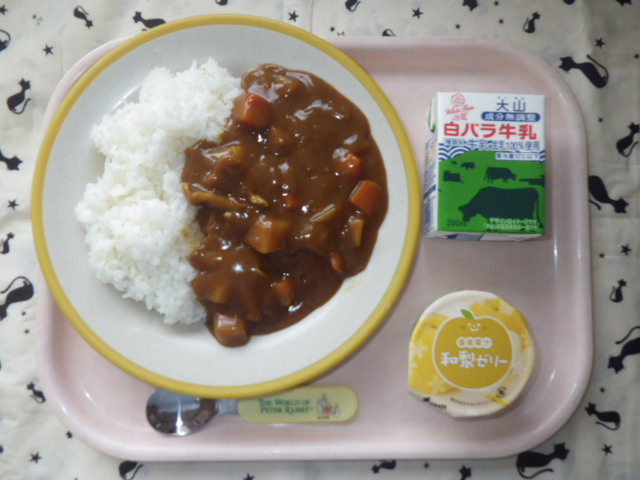 あったかカレー★おかわりしてね♪(2019/10/11) ★ ごはん★◆●ポークカレー★ 梨ゼリー ※あたたかいご飯とカレーは、おかわり自由です。※牛乳は年長希望者のみです。★熱や力になるもの ◆血や肉になるもの ●体の調子を整えるもの ツイート