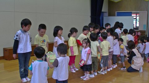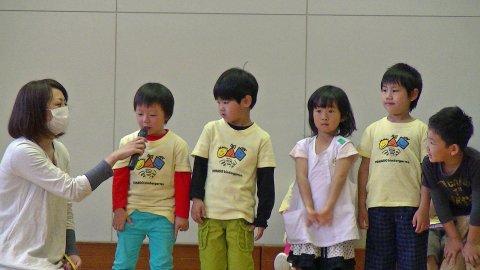 今月の誕生会は、先生と一緒に手遊びをしたり、ペープサートを観たりして楽しみました。