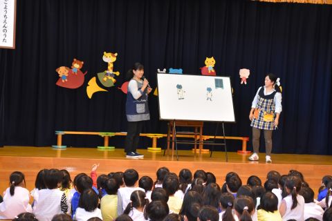 今月の誕生会は、みんなでパネルシアターを観たり歌を歌ったりして楽しみましたよ。