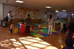 今回のちびっこひろば「人形劇がはじまるよ!」では、人形劇団「ののはな」さんによる人形劇を2歳児のひよこ組さんと一緒に、観させてもらいました!