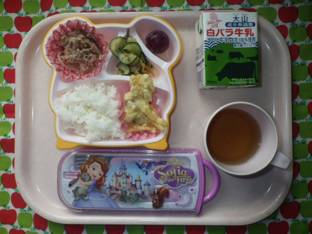 今日はさつま芋でかき揚げだ♪(2019/11/20) ★ ごはん◆●牛もやし炒め★●さつまいものかき揚げ◆●白菜の塩昆布和え● ぶどう ※あたたかいご飯はおかわり自由です。※牛乳は年長希望者のみです。★熱や力になるもの ◆血や肉になるもの ●体の調子を整えるもの ツイート